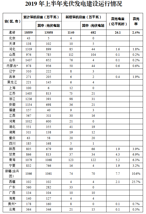 2019年上半年光伏發電建設運行情況